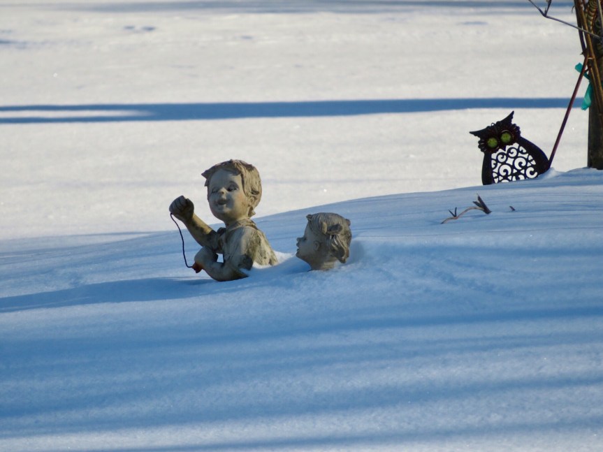 We venture out in the snow when necessary to go to the pharmacy, grocers or other errand. Tuesday, we got a replacement tire for the one that was bad when I arrived last Saturday night. PJ picked me up at the airport and as soon as we started driving, I was like “something’s not right”. We pulled into the first icy parking lot and my welcome to Rhode Island was changing a flat at 1:00 a.m. in the 10 degree slush.