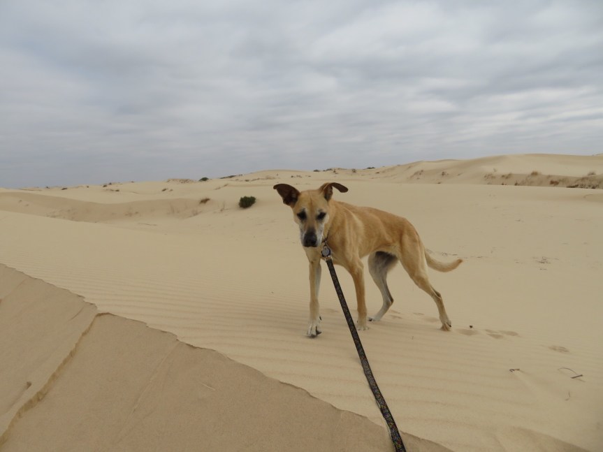 We survived the wind storm after a rough sleep and woke up with sand partially covering our hoses. Cali had me up early in the morning walking around in the freezing cold. It was actually 7:00 a.m. but being on the far western edge of central time zone, it was still pitch black and 38 degrees. Pros of CST = suns out until 8:30, cons = Sun doesn’t come up until 7:30. We went up the side road to the north and followed it about a half mile. After returning to the RV, I attempted to catch a few more z’s but Joaquin came knocking on the door saying I had shorted them $4 on my self pay envelope. I tried to give him the money but he said he couldn’t handle the cash and I’d have to hoof it out to the office to pay up. Too far for the hip. I called the station and they said I could pay up on the way out tomorrow.