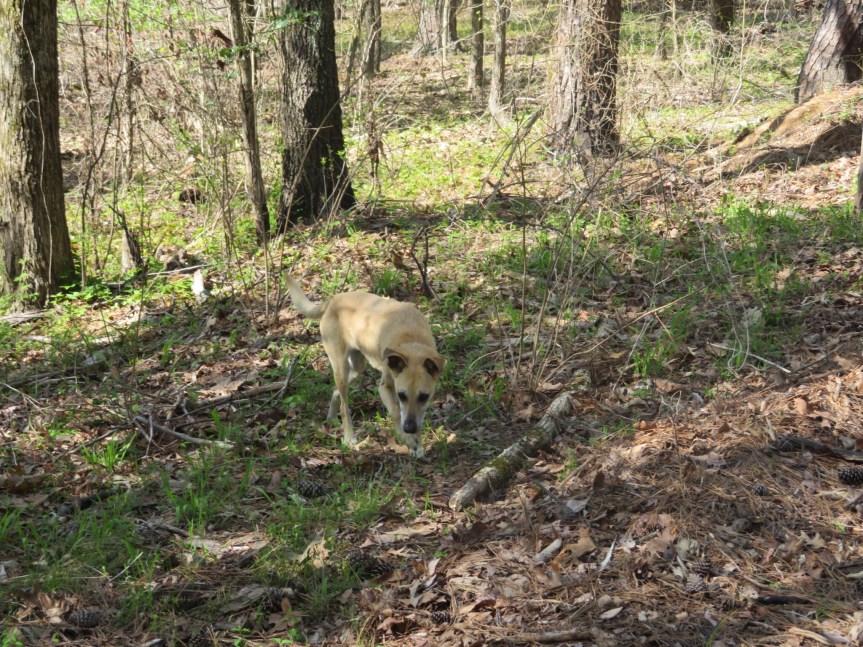 Another long drive where it takes me hours longer to get anywhere than what it says on the GPS or what someone else tells me it will take. I set the cruise on a steady 65 so I shouldn’t be off by a whole lot. We did stop twice, once outside of Little Rock after making it through the city. We ended up out in a fallow field where we could wander around with no one else in the vicinity. I made a PBJ and we continued on for another hour and a half then pulled off in Wheatley, AR to fill up on gas at the Mapco station. They had chicken tenders and red beans & rice so I broke down and got a small serving. We drove into the big truck lot across the road and tried walking again.
