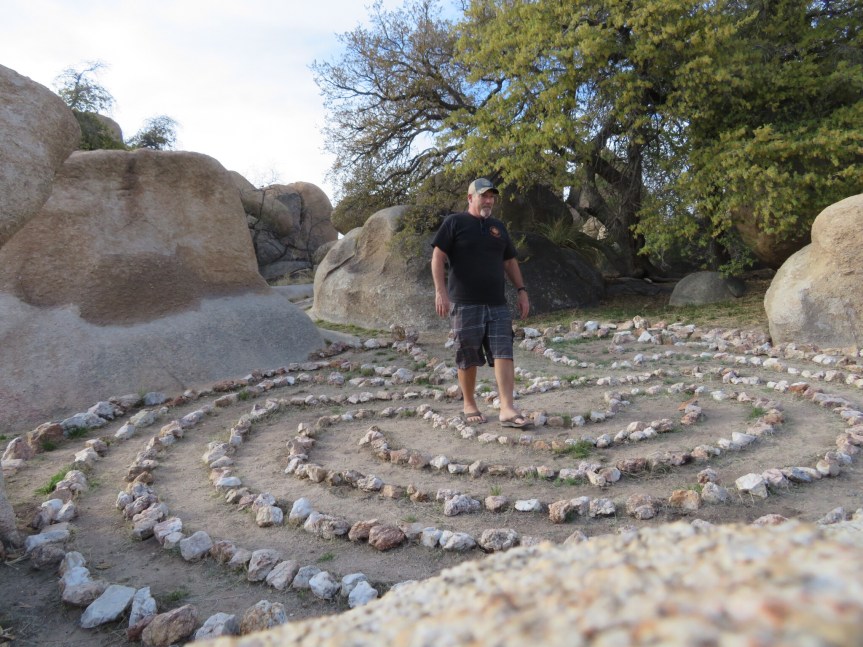 It’s definitely a bit past it’s prime and not quite what it looks like in the online brochures. The saloon only opens on weekends, so the steak dinner is out. They are known for horse riding but I don’t think my orthopedist would recommend galloping down the trails. But me, I’m camping so it’s all good. I got things set up then had a long face time with PJ and walked her around the camp showing her the layout. Then I hiked around the grounds having a look at things. I visited the labyrinth and walked around the maze looking to get a recharge from the spiritual vortex, but not sure if it really took hold.