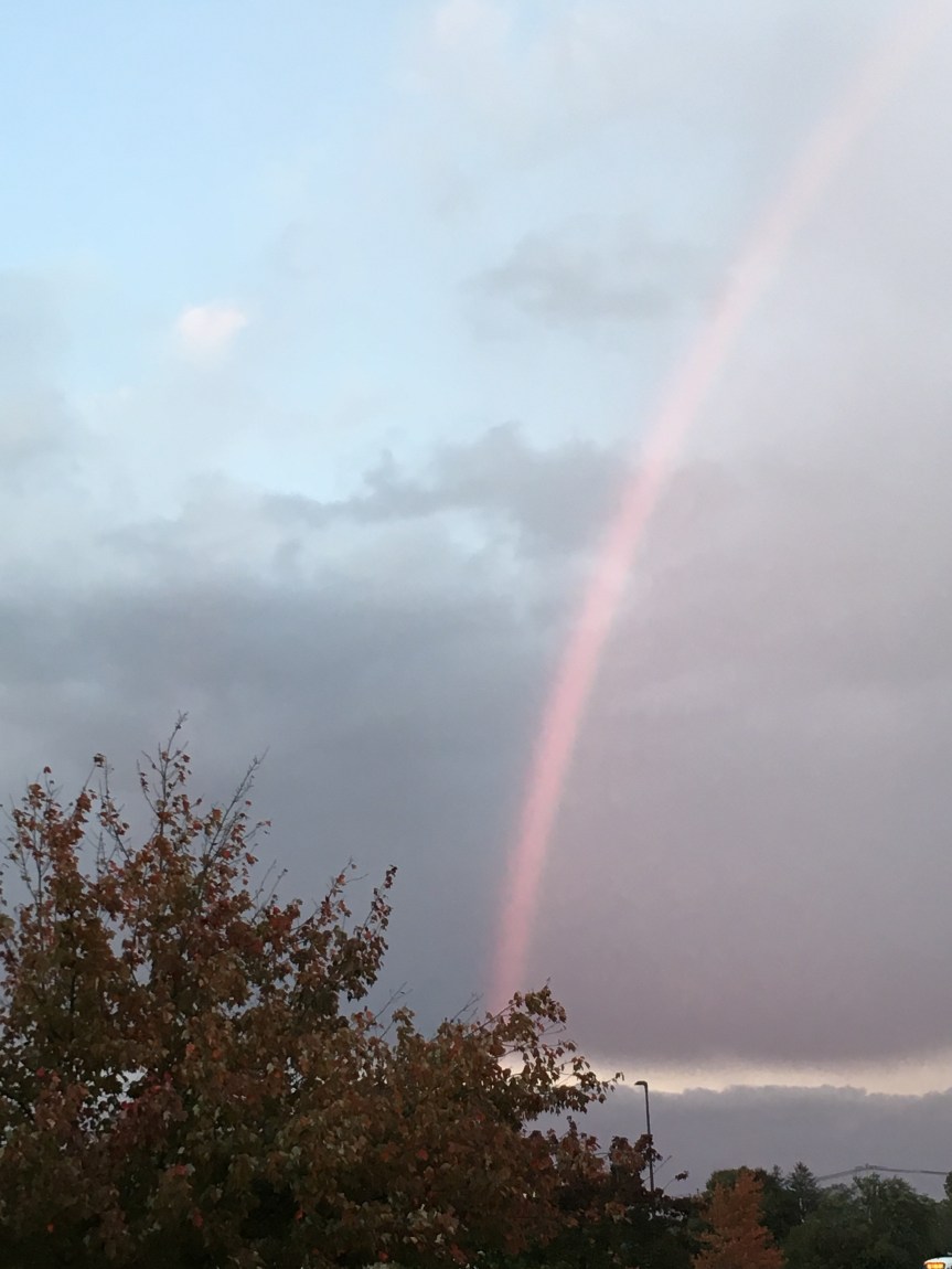 The skies were starting to darken so we packed up and headed over to the Stop n’ Shop for a couple of pantry items. A quick downpour hit while I was shopping bringing with it a beautiful rainbow to brighten the evening sky. From there it was back to Wilson for leftover pizza and a quiet night in the warmth of the RV.