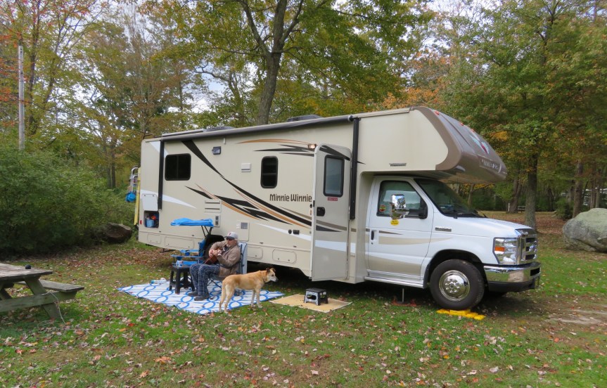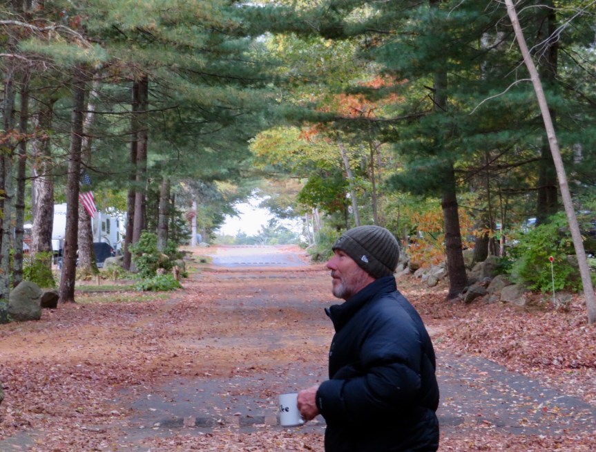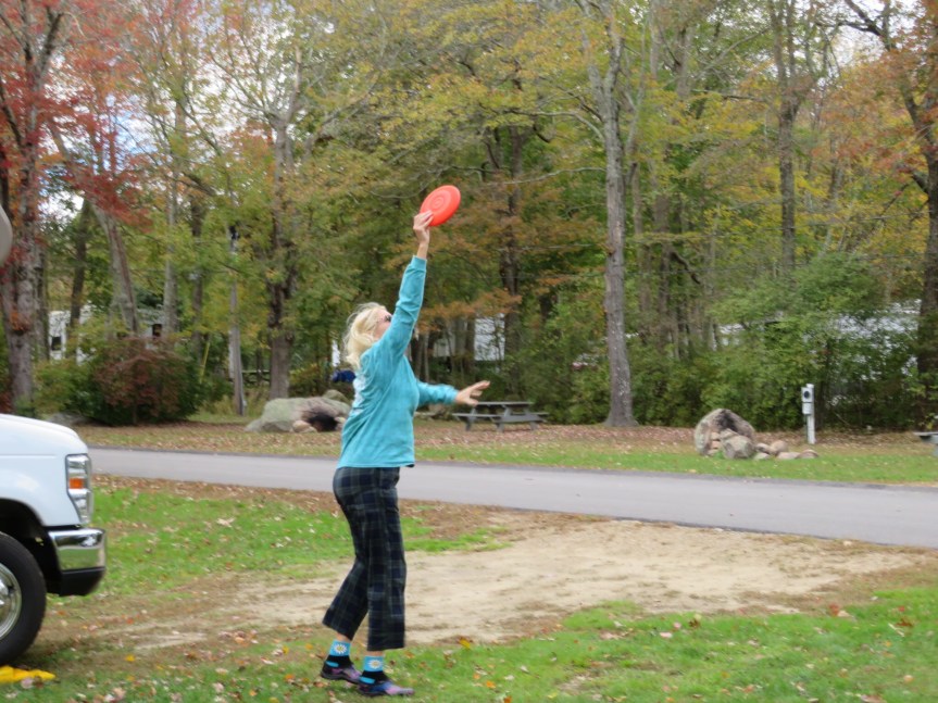 Started off the morning exploring around the campground. We hiked past the shuttered pool complex and then took a side road up past the recreation center to the far fields used for tent campers. We let Cali roam off leash for awhile but she started to get that look in her eye as she began sidling off towards home preparing to sprint for the RV. I nabbed her in time before she could get up a head of steam and hooked her up for a relaxing walk back.