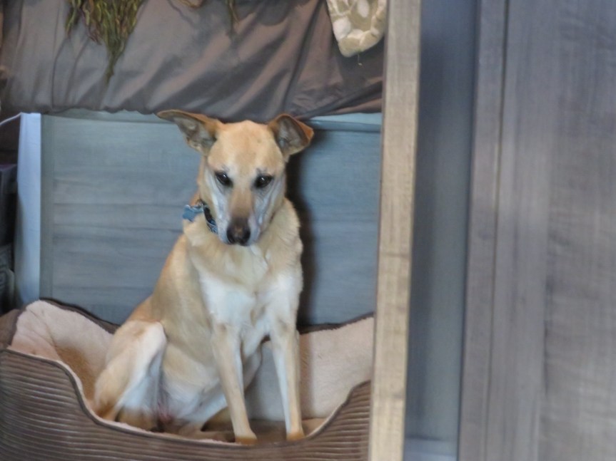 So it was back to camp and another paseo with the pooch through the wind blown leaves of the colorful trees in the woods around the campground. An easy evening amusing ourselves around camp and doing some planning for the upcoming trip. Big storm’s coming so we need to enjoy the dry days while we can still get out.
