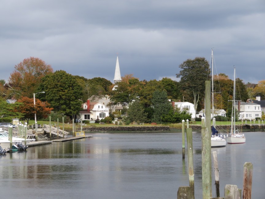 Another relaxing morning cocooning ourselves up in the warmth of the RV. PJ had brought a load of mail back with her from Warwick so we spent the morning going through the stack. I filled in my ballot and got it ready to send in my vote. At midday we drove into the historic village of Wickford, one of the early port towns in Rhode Island. We started out our visit with an AA meeting in an old church in the town center. We’re getting quite local, as even this far out from Warwick, we still knew a number of people in the group.