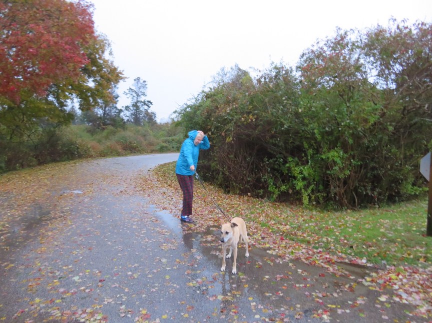 The first nor’easter of the year bore down on Rhode Island today. The remnant moisture from hurricane Willa combined with a low pressure system delivered strong sustained winds and dropped over three inches of non-stop rain. We hid out inside for the day only venturing out in our rain gear to encourage Cali to do her business.