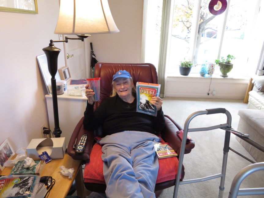 It was a quiet day. I was 100% lazy and idled away most of the afternoon. PJ kept herself busy doing paperwork and doing a couple of loads of laundry. Carole had received a care package yesterday of her favorite seaweed snacks from PJ’s sister, Kim and she was anchored in her chair happily munching on the dehydrated algae as she binge watched reruns of Law & Order.