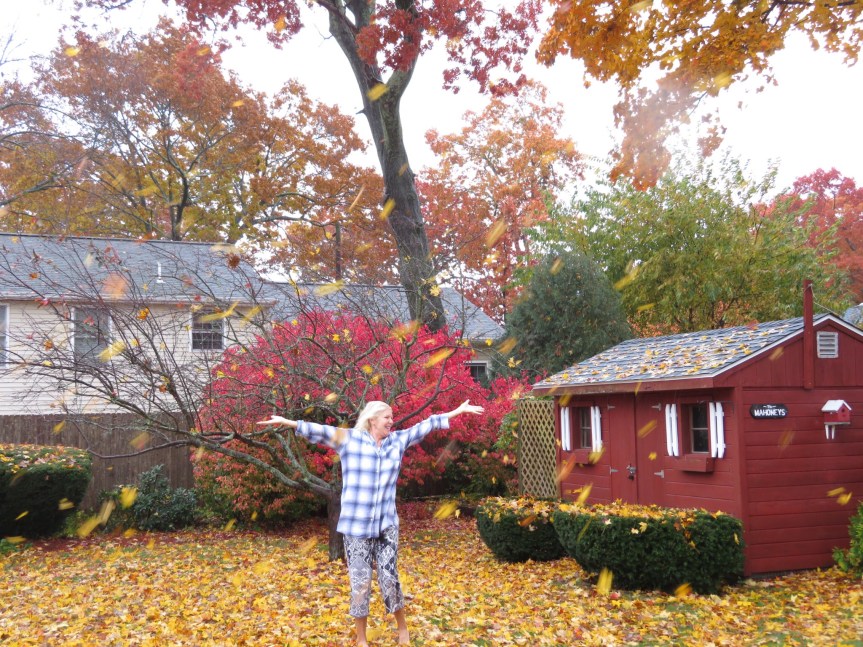 It rained pretty steady through the early morning hours. The wind was strong and howling loudly behind the window. The fall colors on the trees had peaked about a week or so ago and the blowing breeze was quickly removing the leaves remaining on the large trees in the backyard. It was raining leaves and a beautiful yellow carpet of leaves completely blanketed the lawn. Cali went out to marvel at the changing look of the yard.