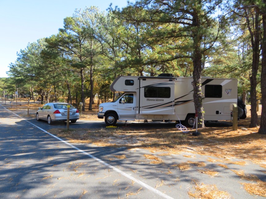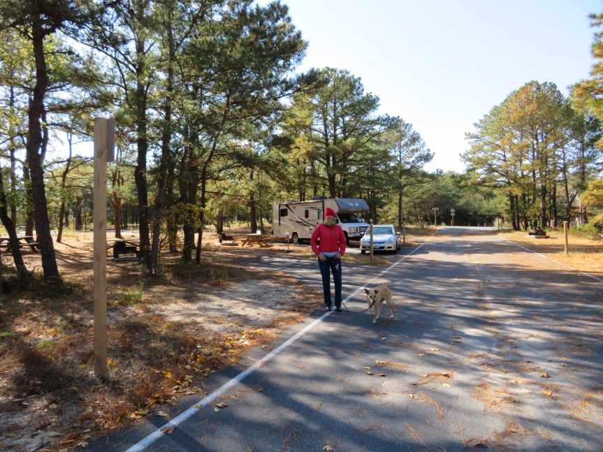 A small trail led along the dunes on the far side of the barracks, so we wandered through the trees for a ways until we came upon a beach access point. We crested a small dune and were greeted by the Atlantic Ocean. We explored around the area for a while then figured we had better get back before PJ started to worry about us. We stopped by the entrance kiosk to see about signing on for another day, but the ranger said all the sites were booked. He was going to check with his supervisor about opening an area that had already been shuttered and told us to give him a half hour then come back.