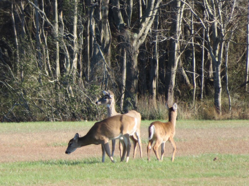 In the meadow across the street, a herd of deer were happily hanging out munching on the grass and enjoying the sunny afternoon. The wind had picked up and was howling and cold. The temp was near 50 but the wind chill must have cut that by at least 10 degrees.