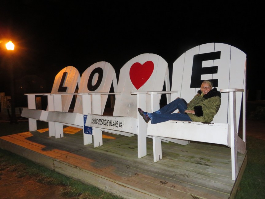 Afterwards, we walked around the empty waterfront to check out the ‘Virginia is for lovers’ chairs and the ‘Misty’ horse statue in the park. The boat slips were mostly empty and only about half of the waterside restaurants were open for business. Cali had been inside for quite some time so we hurried back to set her free then had a bite of dinner and watched a little TV. I sorted through today’s photos and did some writing. Off to Virginia Beach tomorrow.