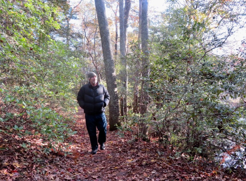 After a perfunctory dog walk, I placed Cali back in the rig with a sleeping PJ then hurriedly hoofed it across the main road to get in a quick hike on the Bald Cypress Trail. The ranger in the office yesterday recommended it as an interesting walk through the swampland of Virginia. I thought I might spot some native wildlife but I was getting a little less hopeful when a heard a couple kids shouting at their dog while they tromped down the trail towards me. The two Chinese dudes that were coming up behind me were having a loud and animated conversation in Mandarin so I stepped to the side of the trail and acted like I was raptly interested in a section of bog featuring the pointed tree stumps that dotted the swamp.