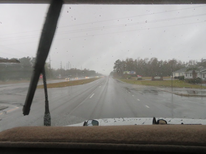 We debated back and forth about whether to stay another day or beat feet down to our next stop in Myrtle Beach. A big rainstorm is on the schedule for the afternoon, so hanging out would just be an indoor wet kind of day. All of the church kids and the happy family campers around us all packed it in leaving us with just the homeless couple across the road and the deliverance roofers a few sites down. That helped clinched the decision to drive. The dump station is closed with half of a broken tree hanging over the drain like a guillotine waiting to pile drive your RV into the pavement. We opted to haul our poo with us down to South Carolina.
