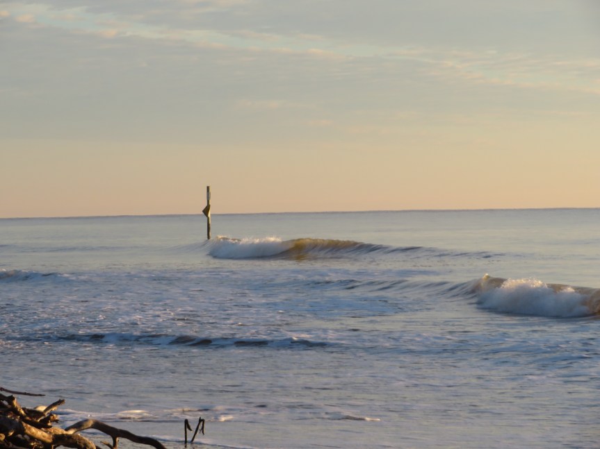 Cali and I slipped out early for a hike through the swamp behind the playground area then a walk along the beach. The weather was calm and the rising sun quickly warmed the cool morning air. I found myself getting overly indignant over the campgrounds lack of trash bins as I toted a bag of poo through the majority of our outing. By my overreaction, it was readily apparent that I could use an AA meeting so after a hot shower, we headed into Beaufort (Byoo-ferd) not to be confused with North Carolina’s Beaufort (bow-fort).