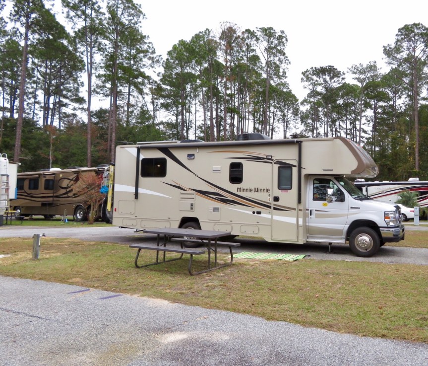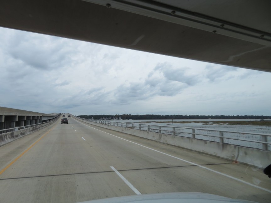 We booked a spot in an RV park a few hours further south in the small town of Darien, GA. It’s main appeal was that it has paved sites and is on high ground. It was an easy drive, scenic at first then about an hour on I-95. Some traffic passing through Savannah but no major stress just uninteresting freeway driving. The suspension modifications I’ve done really showed their value today. The wind was blowing hard, but it was barely apparent in the handling of the RV. One hand driving, feels like your everyday passenger vehicle. Well, maybe not completely true 😏. We pulled into the Inland Harbor RV Park around two and got set up in our tight little spot. Brenda in the office took good care of us and check in was easy. The sites are close but paved and all grass so a good spot to wait out the thunderstorm. We have no neighbors left or right so that’s cool. So far at 11:00 pm, there’s only been a few sporadic showers. Maybe one of those cases of the news media hyping things up. Tomorrow will tell.