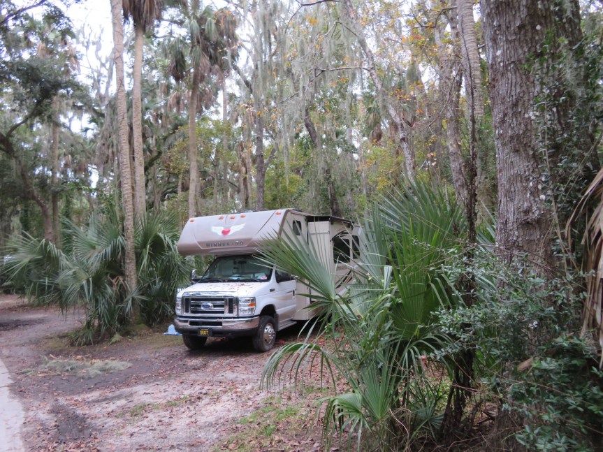 This morning was all business. PJ flies back in at the end of the month and the campground didn’t have availability for the entire time. I had the site booked until the day she flies in so I’d have to find a place to go then move both vehicles and try to have that set up by the time she lands at JAX. I’ve been trolling the Hanna Campground website daily hoping for cancellations. This morning, I tried searching day by day rather than a block of days and found two open sites for the day she gets in. Cali and I did a quick recon then we sat at an open bench and booked it on the iPad. After that, there were four other sites that would be available through the New Years holiday, an additional four days. I jumped on the bike and sped around the reserve trying to discern which space has the best attributes always fearing some other schmoe might be booking it as I’m pedaling around in circles. I picked the best of the bunch and we are set into 2019. I even booked a few more locales further south for after we leave. Florida’s looking to be a challenge since it is such a popular destination. Not as comfortable just waiting to see where tomorrow brings us. Rather not end up in the Walmart parking lot.