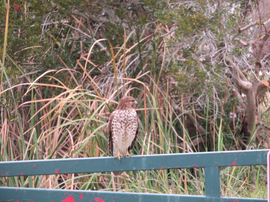 I went on a full on gator search but failed to spot a single reptile. I checked the front pond, the back pond and anywhere wet in between but no luck. I said “Lord, show me an alligator.” And he said “I’ve got it right here next to your shark tooth.” One thing they do have plenty of here in the wetlands is birds. Hawks, herons, aquatic birds of all kinds and a pack of vultures warning you off from swimming in the lake. “Swim here and you’ll be seeing me later” I think was the message he was trying to send me. A good part of the day had passed and I figured Cali might be wondering where I was at.
