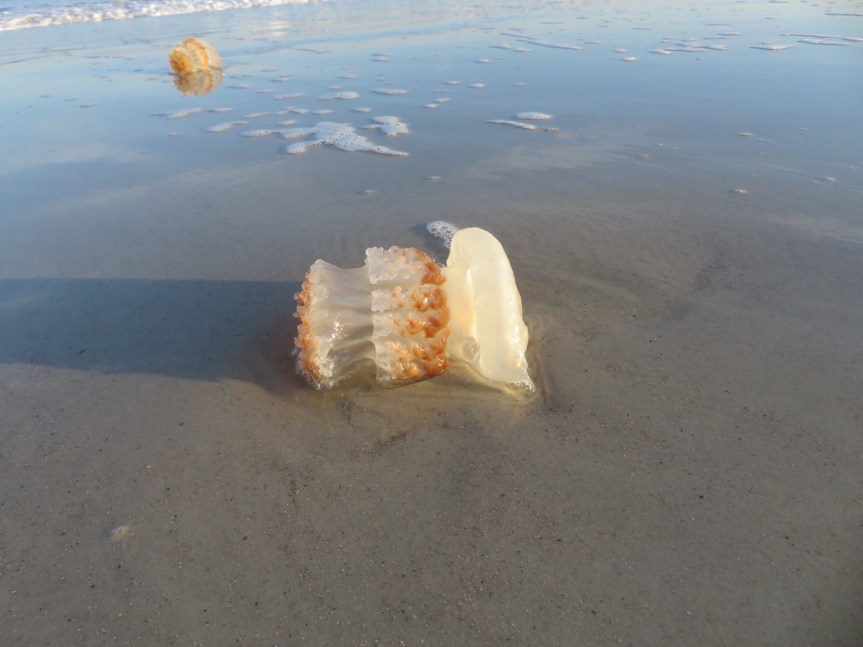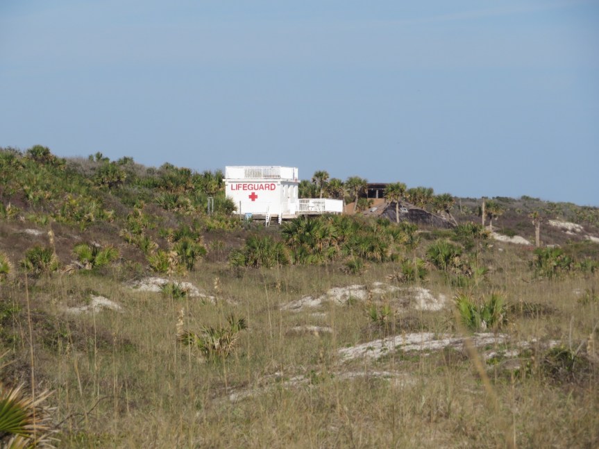 With the house clean and the clothes stowed or drying on hangers, it was time for an evening ride back over to the beach to have a wander around to see about finding a stray shark tooth. Although that didn’t happen, I did get to see an amazing sunset back over the trees in the direction of camp.