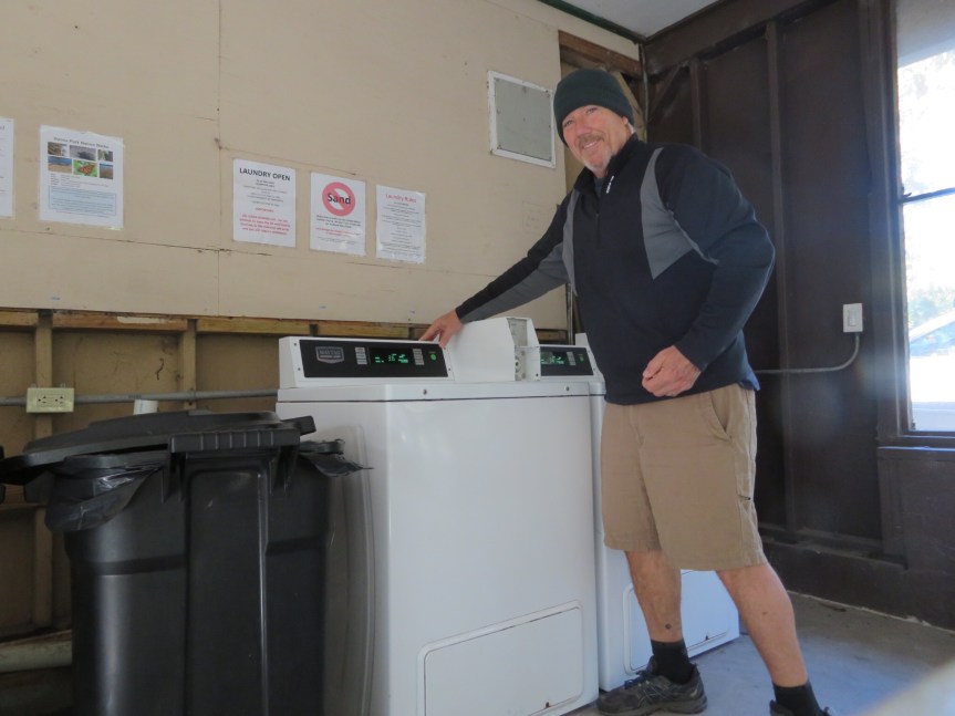 It was a domestic day here at Hanna Park today. When Cali and I did our morning rounds, we checked the laundry room and neither of the machines were being used so we trotted home and grabbed our big laundry bag and went back to take care of business.