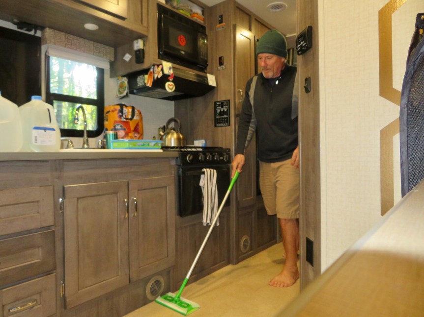 The campground had cleared out quite a bit with people heading home for Christmas Day. It was nice and private to sit outside and strum the guitar in the sun, so Cali and I did that for a while. Then it was time to clean house. I pulled out all of the rugs and gave them a good beating before swiffering up the floor and putting them back in.