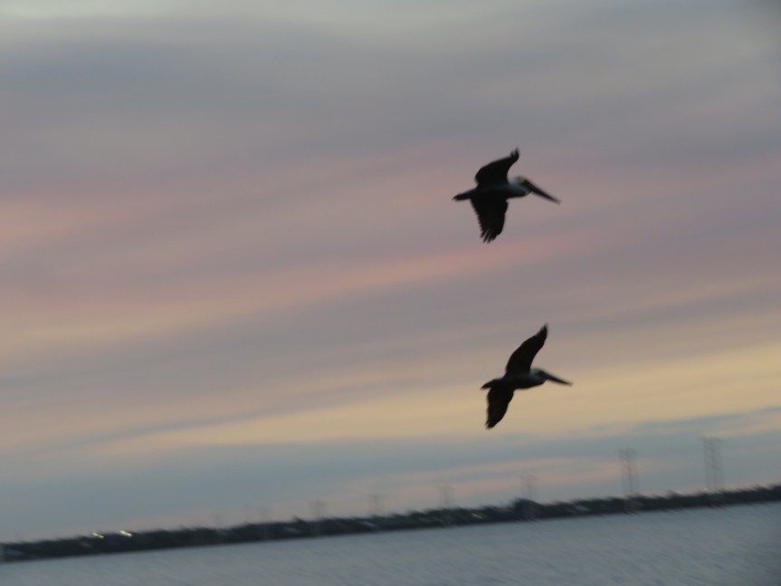 The day warmed up nicely peaking in the high seventies. We sat outside on the river enjoying the sun and playing guitar for a while. The other guest from California two spots over came by and introduced himself and we got into a long conversation. Bob and his wife have been hanging out here since April suffering through the Florida summer heat. As we talked, fish were jumping, birds were diving to feed on them, and the occasional dolphin would swim past.