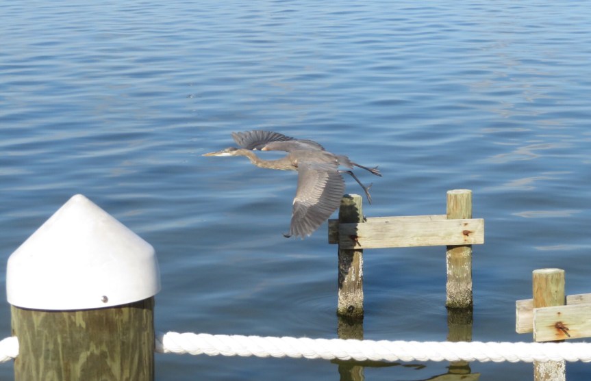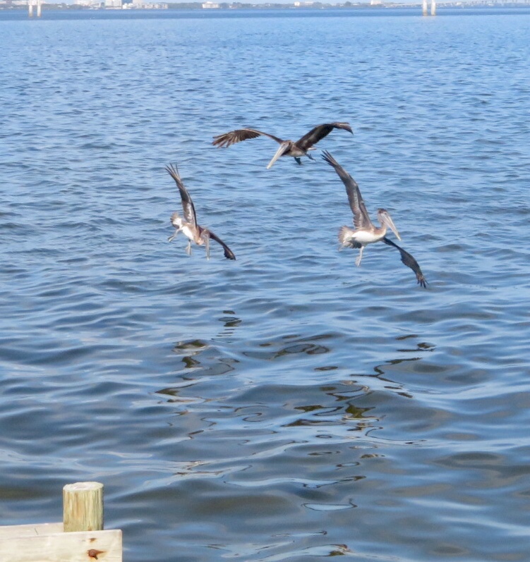Another day on the move. We were up early clearing up camp. We tried to take advantage of our last day in Melbourne as much as we could. It was warm early and another summer like day was on tap. We ate breakfast at the picnic table watching a trio of juvenile pelicans practicing their diving skills. They would follow each other around swooping into the water to splash down in the hunt for fish. A beautiful heron landed not ten feet away and fished from the old pilings that jut out of the water in front of our dock. The wind was barely a breath on the water and it was smooth as a sheet of glass. We got everything packed away and ready to go then used our last hour to get in a final swim at the big pool. A great way to start the day.