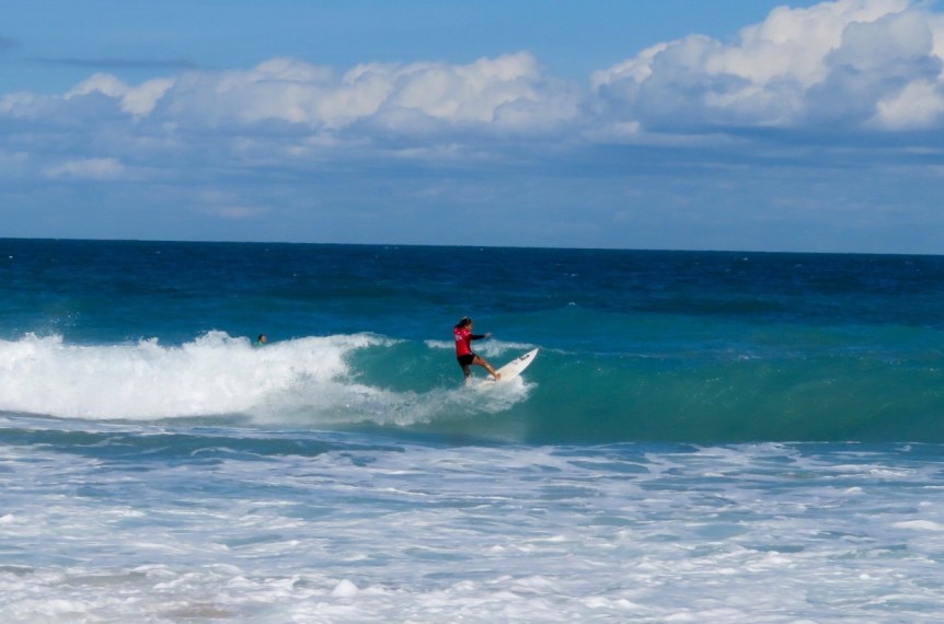 Being our last full day at Sebastian Inlet, we made our way over to the beach to watch the surf contest, the Florida Pro, and to jump in the ocean for a dip. We sat on the sand and ate a few lunch items that PJ had packed then swam out to bodysurf a few hard breaking little close outs. The women’s contest was under way up the beach near the jetty moving a large crowd of Inlet regulars and upcoming contest competitors north to surf in front of the northern beach access.