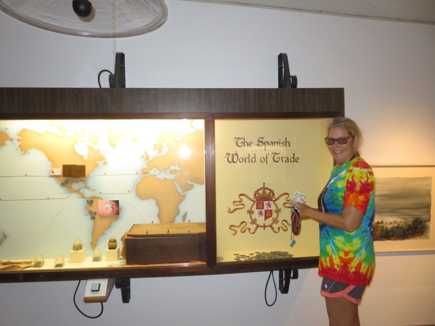 The museum was a small building at the south end of the state park. We paid a small fee then wandered around looking at the artifacts from the village that the survivors had set up after a hurricane sunk their fleet of eleven galleons full of gold. Luckily, the local natives helped them out but they still had a rough time of it. They mentioned more than once the tortuous insects and we can only imagine with the way we’ve been getting worked by the no-seeums here at the park. To this day, people are still finding treasure washing up on the shore. The latest was a gold and emerald ring a guy had come across a little to the south of the park.