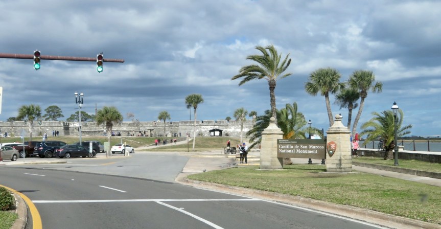 We packed things up and got on the road after lunch. It was a mellow and scenic drive up the A1A to Jax Beach where we will be setting up camp in the jungle for a short stay. We passed over the drawbridge in St. Augustine with its iconic lions and drove by the San Marcos fort that sits on the downtown waterfront. Lots of gray heads were to be seen crowded onto train like shuttles that were touring them through old St. Augustine.