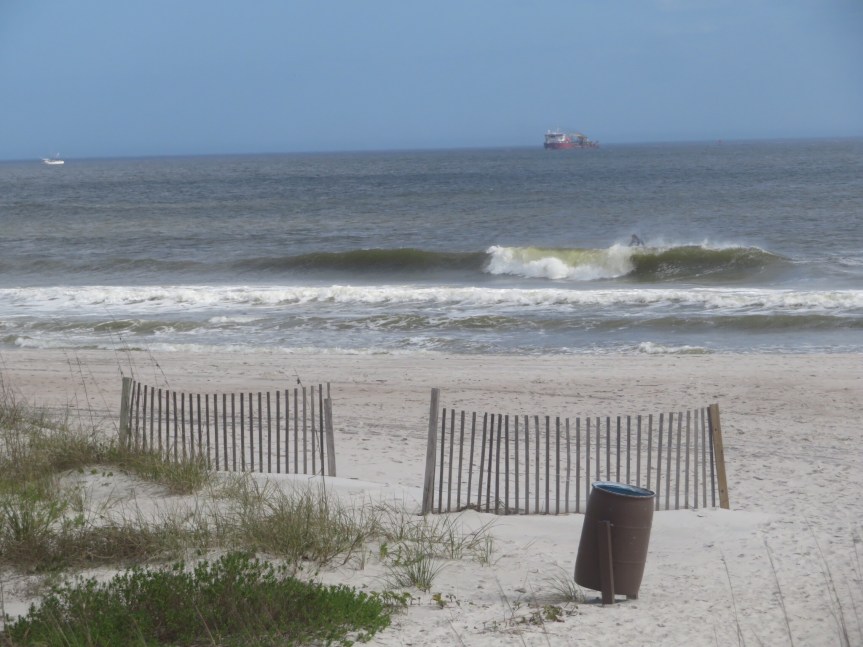 Today, Jacksonville broke its record temperature for this date in history with a high of 85. We took advantage of the warm weather and headed over to the beach. There were some snappy little waves pounding right on the shallow sand. We opted for boogie boards and got some fun rides up onto the sand. We were lounging in our chairs watching the tide drop when a sudden rain squall came roaring in clearing the crowded beach. We put our things in the car then walked back out to the empty beach to hunt for shark teeth in the rain.