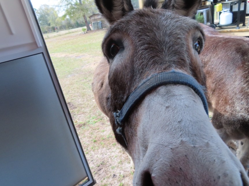 We enjoyed a totally zen day at Karma Acres. We had a laid back morning meditating and reading then we moved outside and ate our breakfast in the sun. The donkeys came by to wish us a good day so we shared another apple with them. The more time we spend with them the more comfortable they get letting us pet them and get up close.