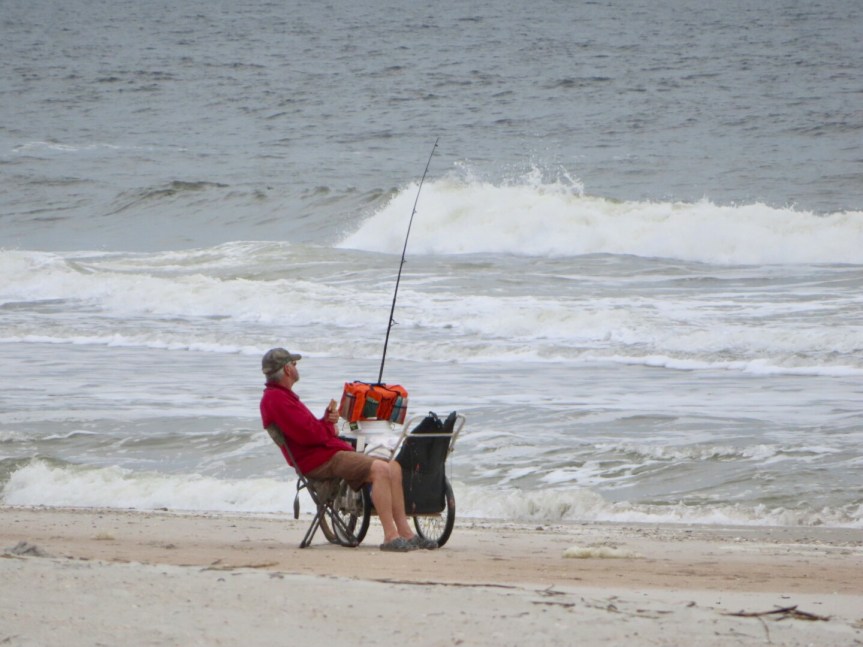 Today there was a morning low tide, so we took the bikes down to the beach and pumped the pedals for forty five minutes through Atlantic Beach, Neptune Beach then past the center of Jax Beach. Lots of people were out by the pier as today started out beautiful, sunny and warm. We turned around and rode back as far as the One Ocean Resort where PJ had stayed a few years ago. We had a look around then took all the side streets to stay along the oceanfront where we checked out the beautiful homes lining the coast. When we could go no further, we got back out onto the sand and fought the wind and rising tide to get back to Hanna Park. All in, we rode two hours.