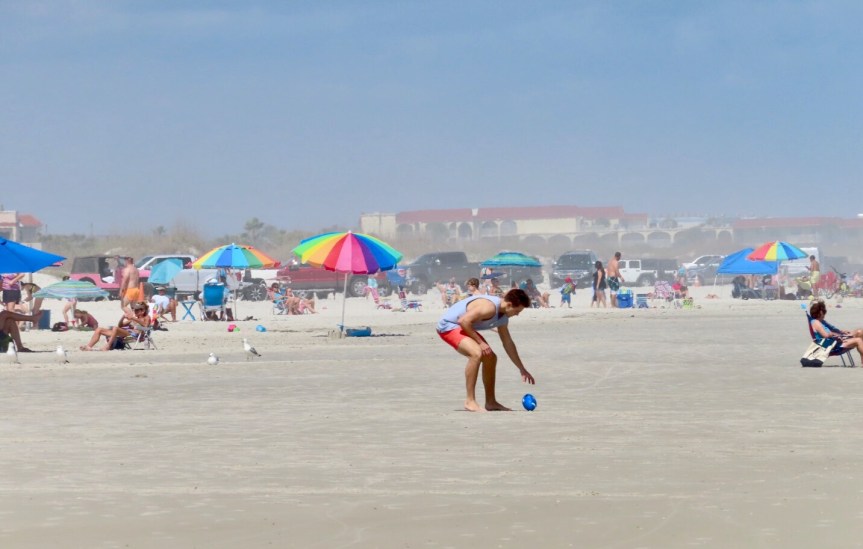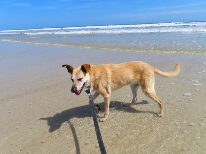 I didn’t want to leave the pooch solo for too long so I dropped off my gear and we took another stroll down to the beach. Sunday and I’m pretty sure some of the local school’s are on spring break. The beach was packed with a broad spectrum of all variations of human life forms. Boisterous teenagers feeling some freedom, serious fishermen tending their lines, rednecks rolling their rumbling 4 wheelers along the sand, numerous families with bucket wielding kids in tow, cyclists of all stripes and the ever present elderly snowbirds that rule the beach. We breathed it all in as Cali leisurely shuffled down the beach.