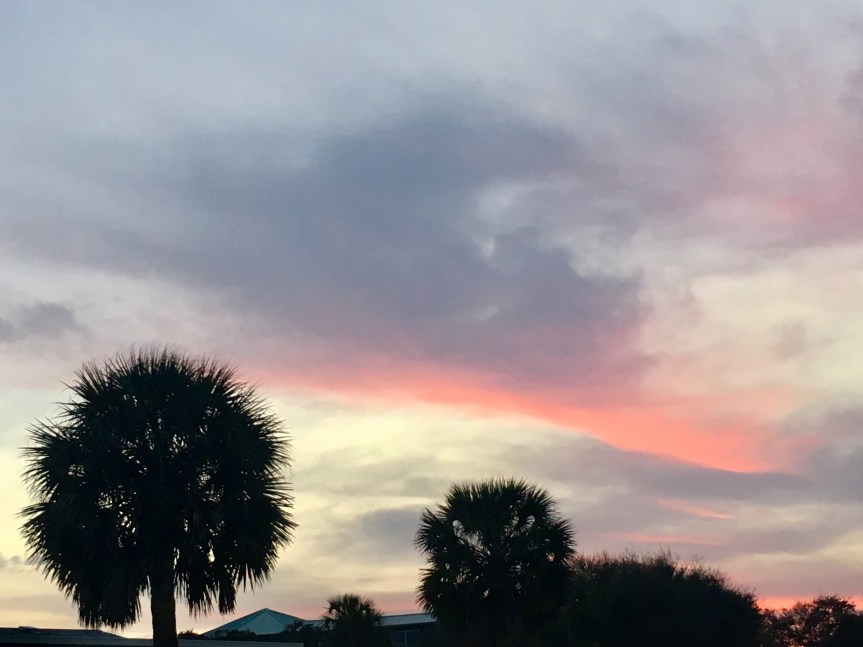 Whiled away most of the afternoon trying to get this lead solo from a Jerry Reed song figured out. A little more complicated than I first imagined. Give me some time. Gotta love YouTube, there’s always someone willing to give a lesson. Between walks, Cali and I sat in the shade of the awning and had a mellow afternoon. Near sundown, I did an hour walk at a brisk pace down towards the pier and back. That’s kind of how things flow around this neighborhood. I’ve got new folks to the front, motocross racers from Ohio on a circuit. Last Sunday here in Florida, next week in Georgia. Cool family. The Harley guys behind headed off to the bike week festivities and rolled back in after midnight keeping things as quiet as they could. There are more kids this week. I’m guessing for spring break. And as always, the ever present herds of dogs sniffing their way around every bush, shrub and scruffy patch of grass. I’m really enjoying the community thing more than I thought I might.