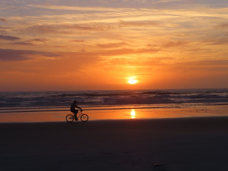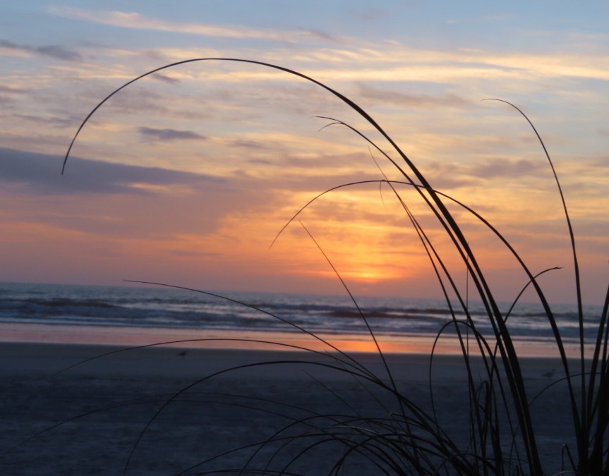 Since the time change, Cali and I have been doing a pretty good job of getting up early in the morning and catching the sunrise down at the beach. This morning we loitered on the boardwalk sipping tea for awhile before moving down onto the sand to start our day with a little walk. We were not the only ones up. There were already cyclists roving the beach and small clusters of sunrise watchers either on boardwalk benches or strolling along the shore. It is setting up to be another beautiful day.