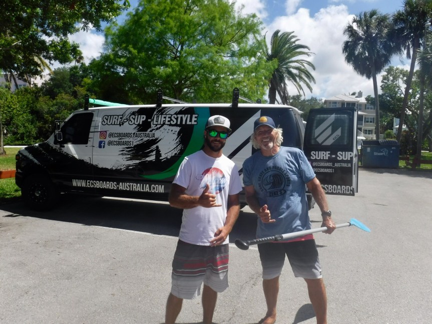 Cali’s gastrointestinal issues don’t seem to be resolving on their own, so today we broke down and took her to the vet over in Stuart. We actually made the appointment yesterday after doing some investigation online. We went with Surfside Pet Hospital and we are glad we did. There is a good reason they got 4.9 stars on Google. Everyone at the clinic was caring, competent and good at what they do. Dr. Abadia gave Cali a thorough exam, listened to her history and set us up with some meds to hopefully get her on the right track. An antibiotic, an anti diarrheal and he suggested probiotics to maybe help for long term health. We started her on the regimen and hope for a quick recovery. We took her home, grabbed a quick bite to eat, then sped off to meet Travis from Zeke’s Surf, Skate and Paddle for our complimentary lesson that was included in the purchase of our new board.