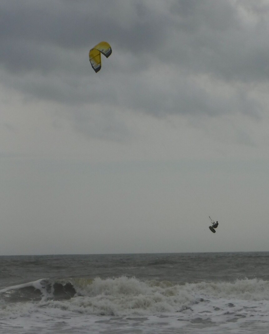 I started the morning out on the beach doing my shark tooth collecting walking meditation. It was awesome. A warm but windy (sand blasted) morning with just a few adventurous souls waiting for the rain and lightning to commence. No one else was foraging for teeth and the tide was just right so in short order, I gathered up eighteen of the little gems to add to our growing collection. A really skilled kite surfer was tapping into the high winds to get some massive airs in front of the main beach pavilion as his dutiful wife took photos with a high powered camera on the beach. By noon, the ominous darkness crept in from the west eclipsing the sun and turning day into night. Off of the jetties at Mayport a big funnel looking cloud was dropping tendrils of hard rain into the Atlantic. A lifeguard truck pulled up and told the few of us left on the sand to go take shelter, so I headed back to the rig.