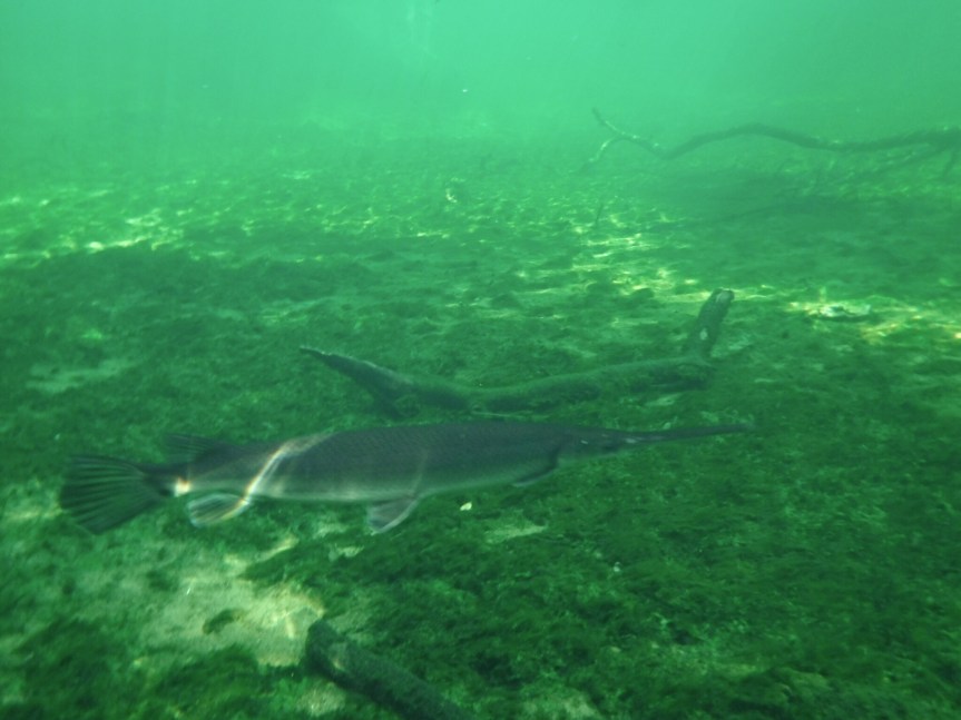 The small river was filled with people floating along on rented inflatable tubes, mostly kids and families. We swam along in the clear water getting refreshed after our drive. We were surprised by the large fish that fearlessly cruised along next to us as we swam. Florida gars with big long snouts. There were signs warning about alligators but no one seemed to give them much heed. We spent about a half hour splashing around the cool water then wandered around on the wooden boardwalks that meandered along the spring.