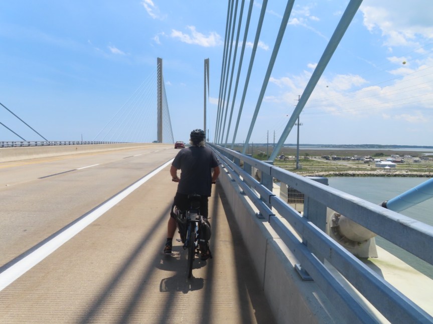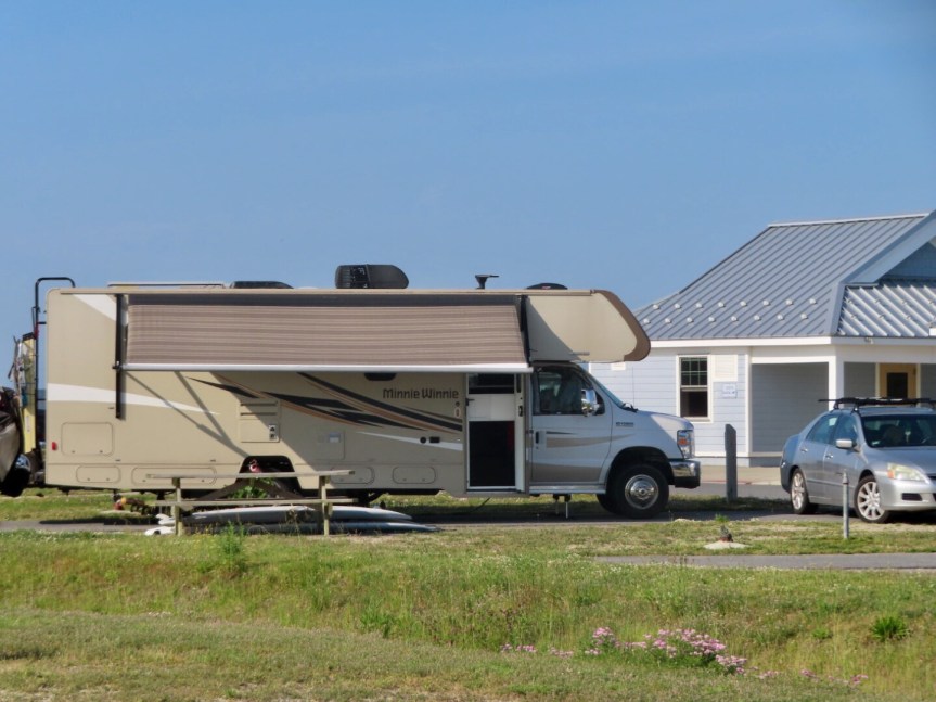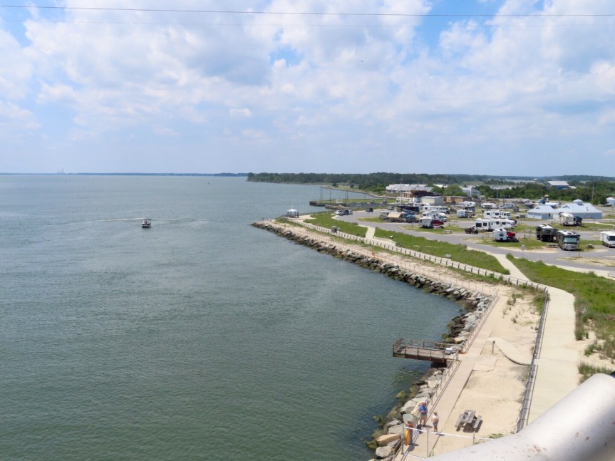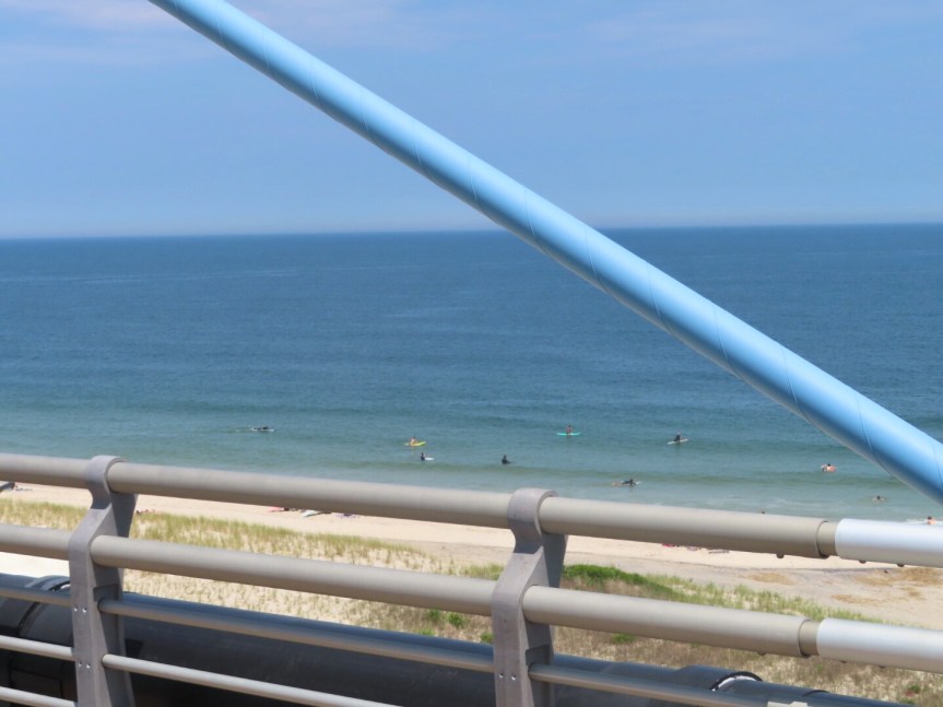 The highlight of the day was a long bike along the coast highway. We started out by going north until we arrived in the little berg of Dewey. When the traffic lights became a nuisance, we turned around and hammered back into the wind and crossed the Indian River bridge passing the campground and going towards Bethany Beach until we’d had enough. Fun ride and good exercise. We cooled down with a jump in the chilly Atlantic where we boogie boarded some teensy shore break.