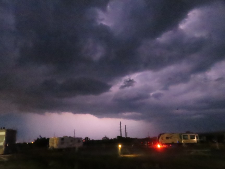 The evening brought with it some ominous clouds and a burst of thunderstorm activity. It raged and the wind howled for about 45 minutes then everything went back to normal windy conditions. I was racing around putting things away as the plant got knocked over, the chairs went squirting across the yard and the paddle boards threatened to go airborne. Luckily no harm done and an easy night with cooler temperatures and breezes.