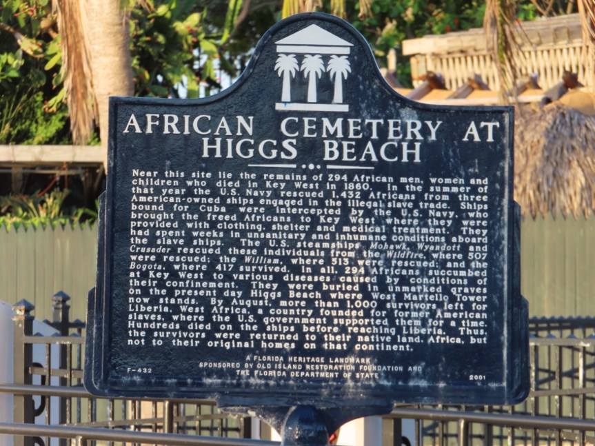 Nearby on the other side of Higgs Beach there is the African Cemetery where slaves from captive ships that didn’t survive had been buried. Three U.S. ships intercepted the slavers and liberated those in the holds but several hundred still died and are resting here in Key West. PJ strolled around reading the plaques and getting her history lesson.