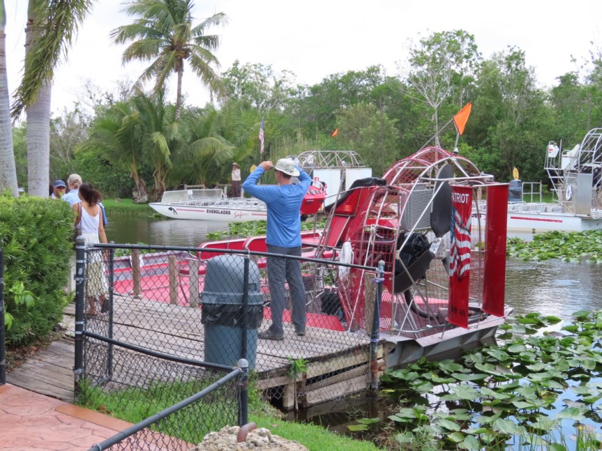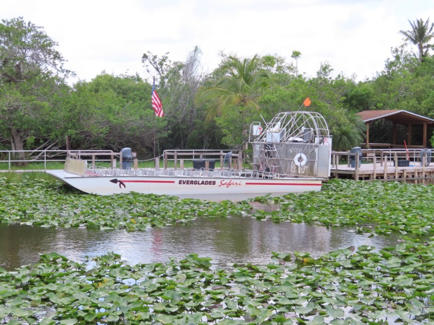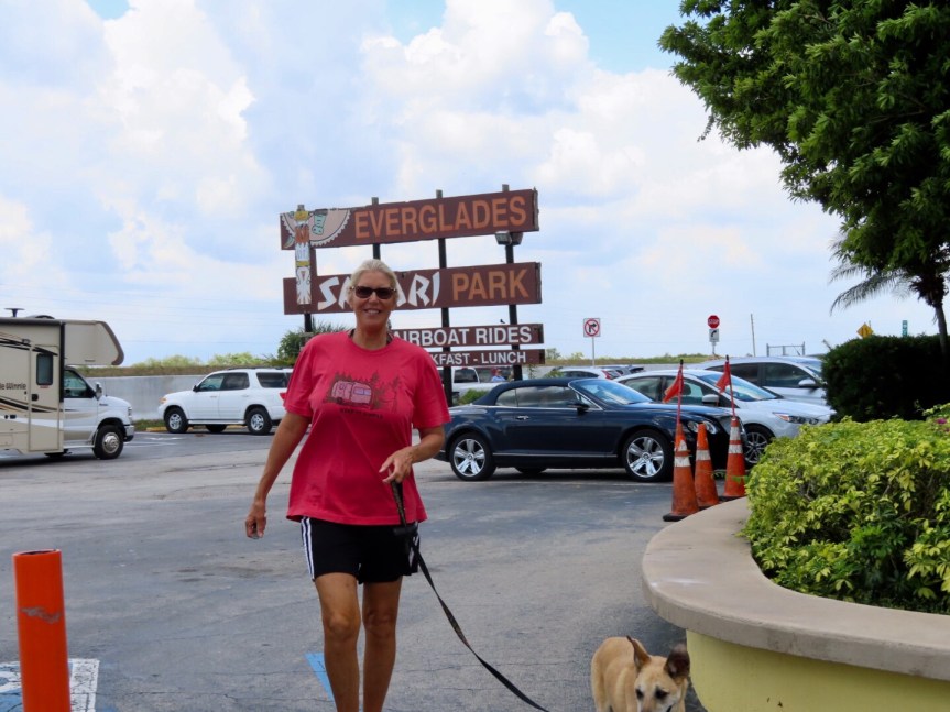 Travel was easy and the traffic was light. We drove by numerous outfits trying to lure tourists onto their airboats for excursions through the marshlands. We used one of their parking lots for a bathroom break and to let Cali stretch her bony little legs. There was no need for airboats to see alligators, they were out along the highway sunning themselves. You could also spot their telltale snouts peeking out from the water in the canals lining the road. It was an amazing ride crossing hours of Everglades with nothing but marshes, mangroves and grasslands surrounding us on all sides. The elevation here is two feet and the road is at three feet so we were right in the thick of it.