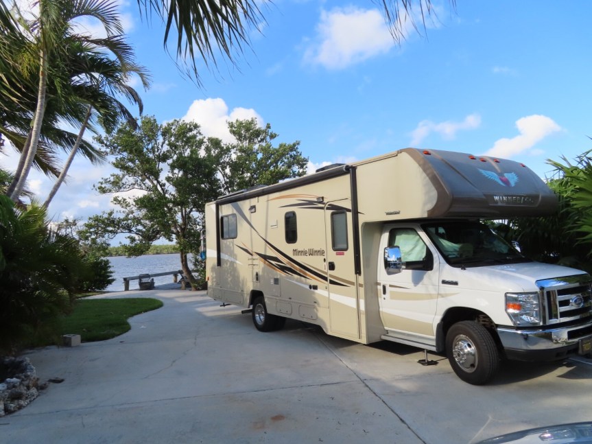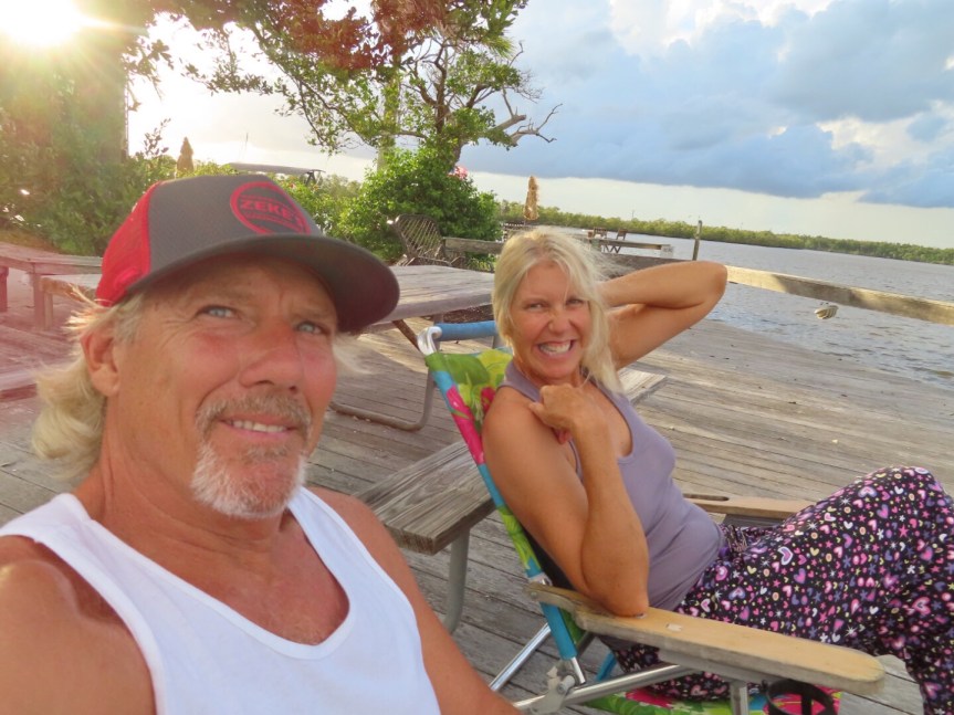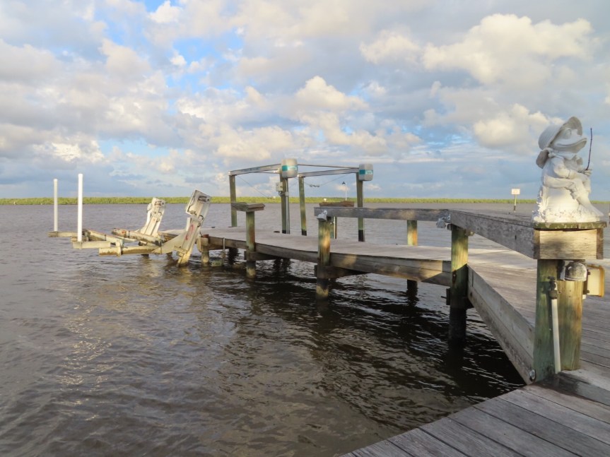 It was late afternoon when we were finally set up in our little spot in Chokoloskee. It’s an RV resort where people own their own lots and set them up how they want. The season has passed and the place is a ghost town. Our site is awesome. A large pie shaped corner on the bay with a lawn area, docks and tons of privacy. It’s deceiving walking around because most of the owners have left behind their trailers, RVs, boats and toys so it looks occupied but as you wander around the quiet gets a little eerie and I was glad to see one or two other spots actually had signs of life. I went over to the main pool area and found the gym upstairs and did a little workout. In the evening, the wind kept the bugs at bay and we enjoyed sitting out on the dock as the day wound to a close.