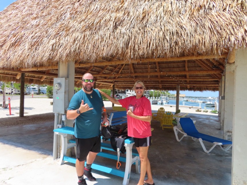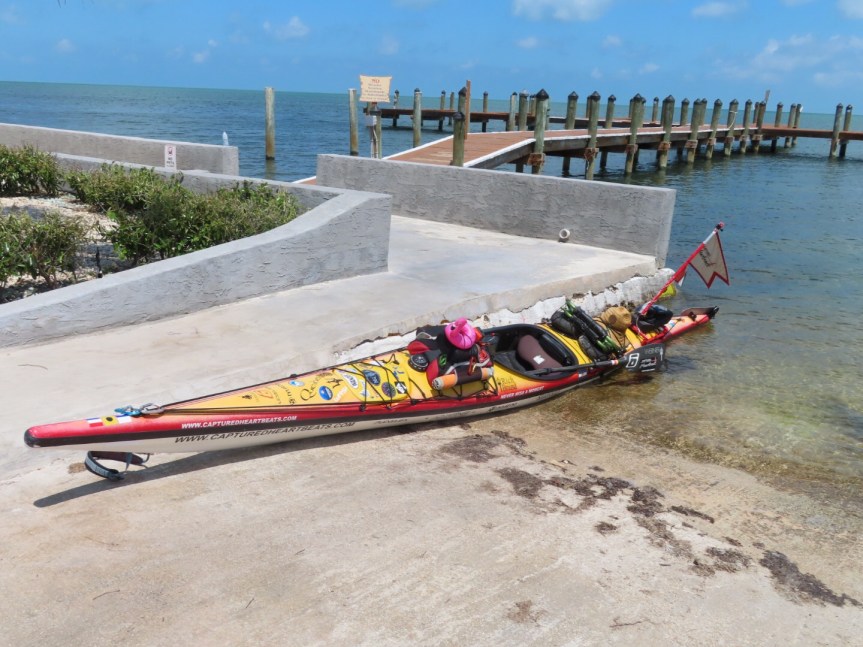 We had a knock on the door and it was a burly looking kayaker who had floated up to the boat ramp earlier this morning in a custom long distance kayak then promptly fell asleep blissfully snoring in a chaise under the palapa. Rich was on a year long trek covering waterways from Canada through the Mississippi and now he was only a few days away from his finish in Key West. He was needing a drink of water, but we did him one better and set him up with a sandwich and an energy drink. We checked out his rig and talked about his travels. He works with kids and does motivational speaking along the way. You can check him out here.