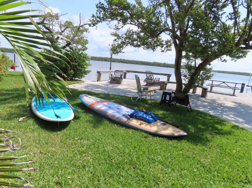 From there the going was a lot easier and we cruised with little effort taking a break and sipping our Cytomax. We came upon an area where the mangroves made a tunnel overhead and had to get on our knees to work our way through. Unfortunately, in this part of the bay there was very little wildlife to see. Most people enter the Turner River miles up the Everglades and that area is better known for having things to see. Or maybe it’s just the stormy weather we’ve been experiencing lately. We had a great paddle, two hours of differing waterscapes with some stretches of hard effort and intensity and times of leisurely touring. We circumnavigated the resort to see the waterfront lots and the housing development on the other side before returning to camp.