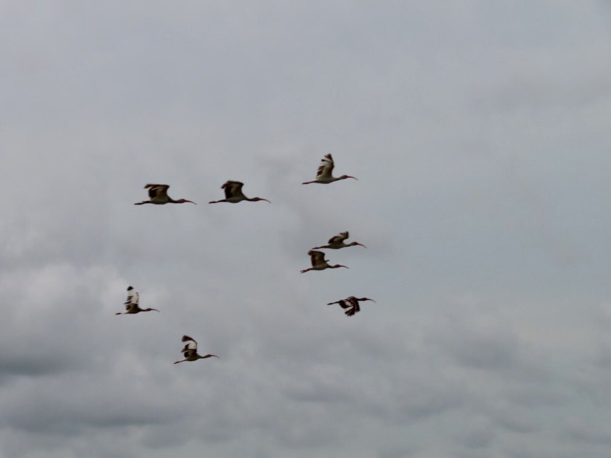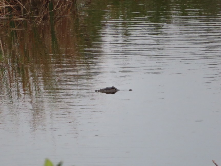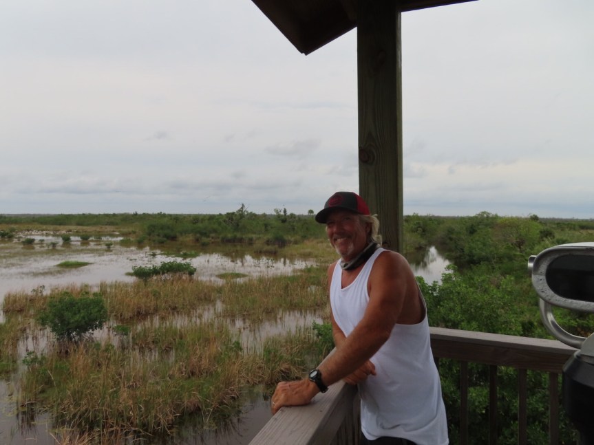 We hiked a short way up Marsh Trail to the observation tower being chased and harassed by those nasty green headed deer flies. When we climbed the steps, the greenheads seemed to lose track of us. It was close to sundown and we watched as hundreds of birds came flying in from their day’s work to roost in the trees of the Everglades. It was a sight to see as more and more birds just kept pouring in. We could see gator snouts breaking the surface of the water with gars and tilapia just below the surface. We were the only people for miles. We stayed watching until dark then tried to outrun the greenheads getting back to the car, aggressive bloodsuckers! We’ve explored the Everglades from both coasts of Florida now east and west.