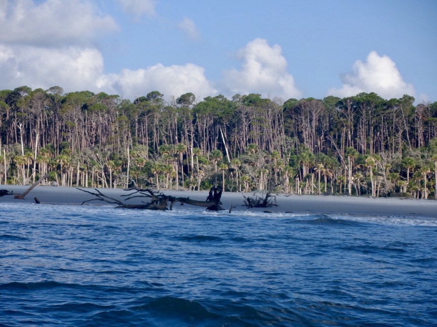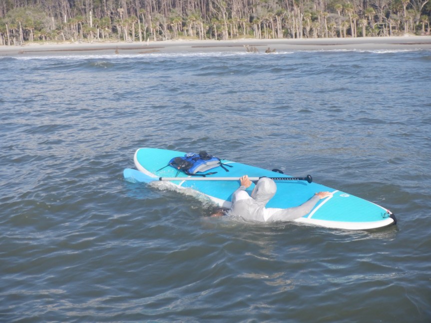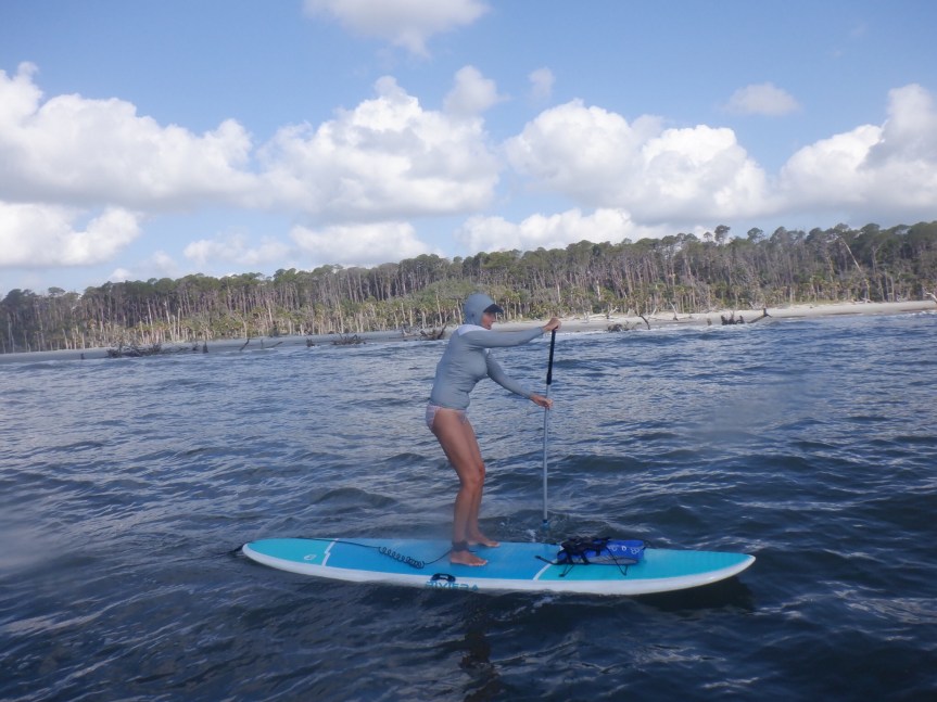 Before taking off from Hunting Island this morning we wanted to paddle our boards down the Atlantic to the Hunting Island lighthouse about a mile away on the point. We geared up in front of the ranger station and entered the water out front. The waves were still a little choppy from the wind but not so much that we couldn’t paddle, it just made staying upright a little more like work.