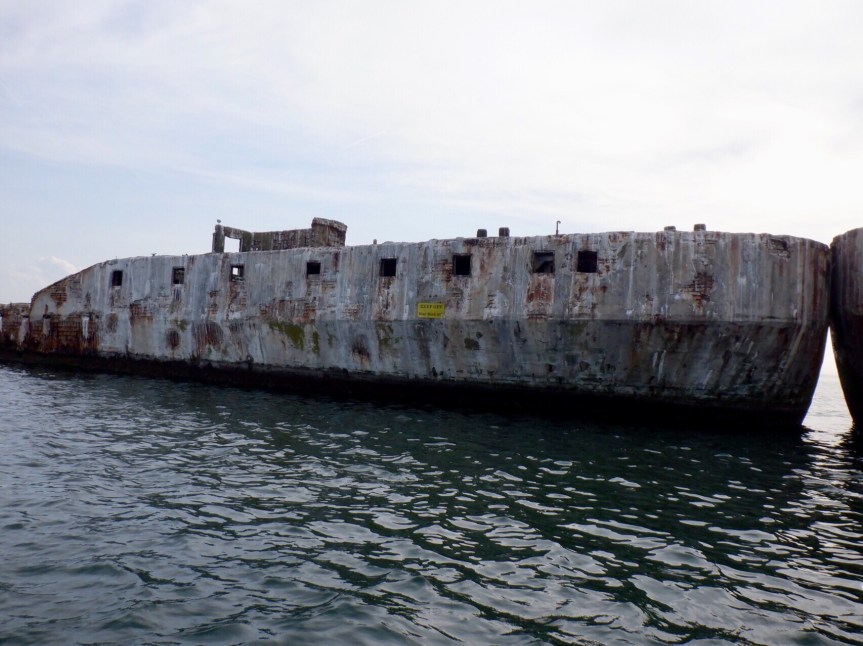 We spread out our mats and got comfortable. PJ’s good friend Diana was coming up from VA beach so we organized camp and she was soon sitting with us under the oaks bringing us up to speed on the latest life happenings here in the great state of Virginia. She and PJ had woman to woman stuff to discuss so I took the paddle board down to the marina and paddled out into the bay. They have sunken a line of old concrete World War II ships to act as jetties and create a harbor like area within their arc. I passed along their hulls then worked my way over by the wooden landings that bring the campers to the western beach area. The current was strong going back so it provided a good workout for the return trip. I passed by the beach where I launched and went over to the quay on the far side where some kayak fishermen were looking for a catch. A few jet skis blew past but other than that there were only a few boats fishing calmly near the line of ships.