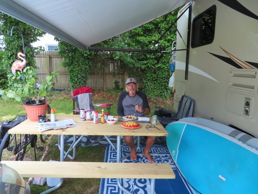 The Gecko is a colorful little hut with a nice patio area outside. They serve up the best organic soups and fresh paninis in all of New Jersey. Just watch the low ceiling beams as you walk through! We sat out in the garden and had a tasty dinner. PJ grabbed one of the Mexican blankets they provide to warm the goose bumps on her knees. Ready for a restful night, we pedaled back up broadway to our cozy little spot at the Depot.