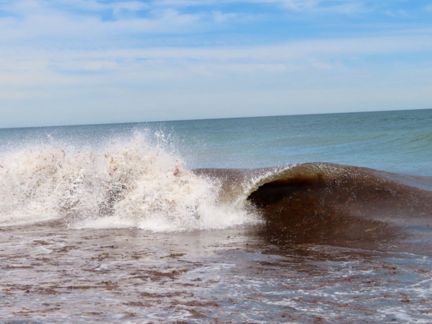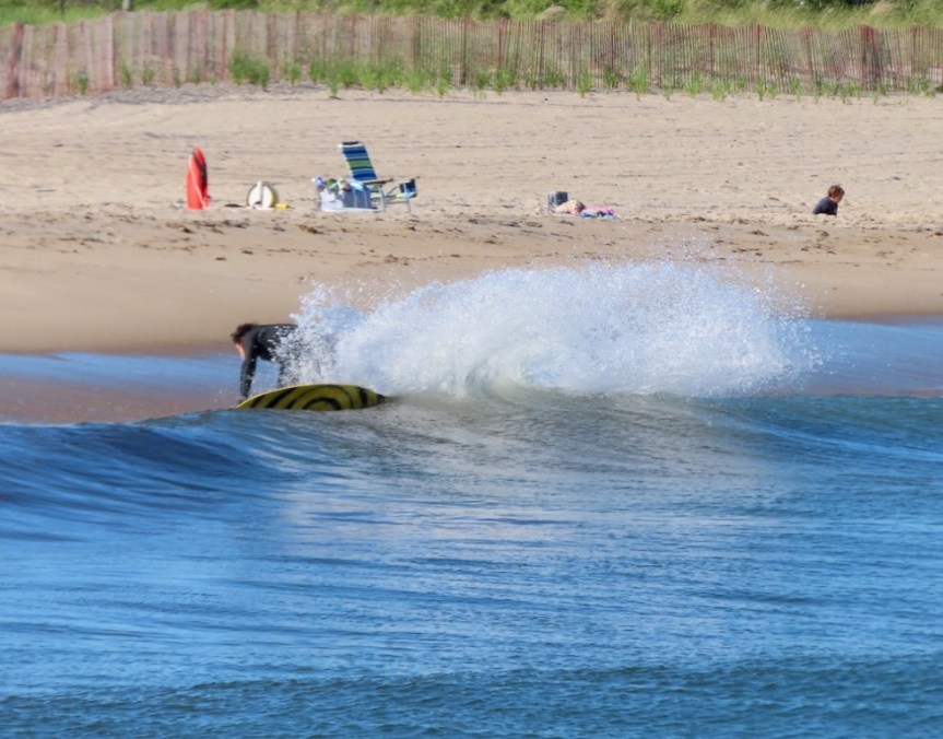 I returned to the RV and napped for a while then headed back out to claim a spot on the sand where a crew of young skim boarders were charging the high tide shorebreak then riding back in on the cracking little waves. Probably the most skilled skim boarders I’ve come across. A few families were building sand castles and a few seniors were hiding from the wind along the back fence.