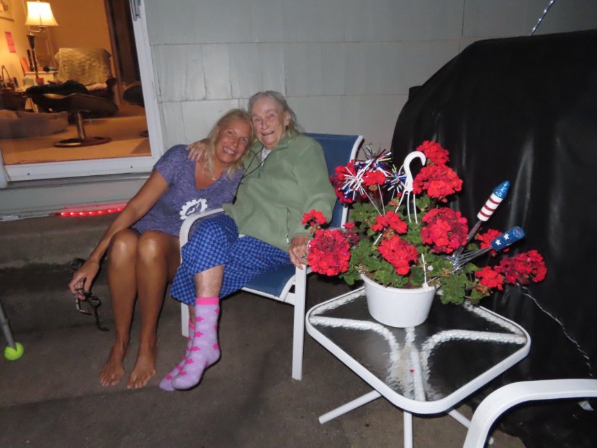 1. Awesome blog, Mike. The fireworks were spectacular! This is my first day on the computer. I feel like I’m getting stronger every day. My kids and Karen have been my caregivers and are doing a fantastic job. Had my 2nd. rehab at home and will be working out myself every other day. The R.N. came Thurs. and will also stop in next week. Thank you a million times for the windchime, key chain and homemade card. You guys are the BEST!! Love you, Meema
